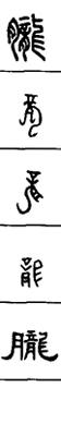 从上到下依次是小篆、甲骨文、金文、古玺及战国文字、缪篆及汉代文字、鸟虫篆。