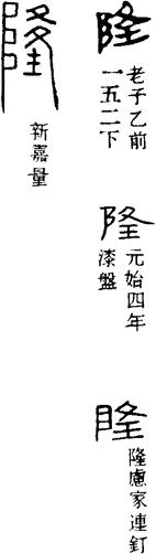〈辨〉隆字篆书从生降声,本义为长得形体丰大。生,详生字下。楷书讹省作隆。