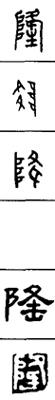 从上到下依次是小篆、甲骨文、金文、古玺及战国文字、缪篆及汉代文字、鸟虫篆。