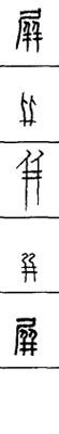 从上到下依次是小篆、甲骨文、金文、古玺及战国文字、缪篆及汉代文字、鸟虫篆。