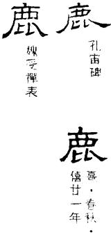 〈辨〉鹿字甲骨文象鹿之形.为象形字;金文、篆书字形讹变,楷书作鹿。鹿字用为偏旁,表示和鹿类动物有关的意义,有时也作声符。