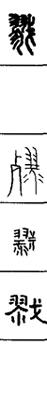 从上到下依次是小篆、甲骨文、金文、古玺及战国文字、缪篆及汉代文字、鸟虫篆。