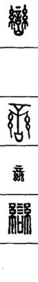 从上到下依次是小篆、甲骨文、金文、古玺及战国文字、缪篆及汉代文字、鸟虫篆。