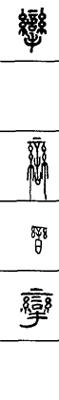 从上到下依次是小篆、甲骨文、金文、古玺及战国文字、缪篆及汉代文字、鸟虫篆。