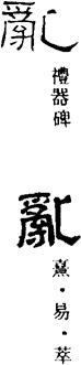 )地,無所覺知,猶如死人。”敦研361《佛經》:“或亂頭被髮,啼呼而走。”按:《顏氏家訓·書證》:“世間小學者,不通古今,必依小篆,是正書記;凡《爾雅》、《三蒼》、《說文》,豈能悉得蒼頡本指哉?亦是隨代損益,互有同異。西晉以往字書,何可全非?但令體例成就,不爲專輒耳。考校是非,特須消息。……自有訛謬,過成鄙俗,‘亂’旁爲‘舌’,‘揖’下無‘耳’,‘黿’、‘鼉’從‘龜’,‘奮’、‘奪’從‘雚’,‘席’中加‘帶’,‘惡’上安‘西’,‘鼓’外設‘皮’,‘鑿’頭生‘毁’,‘離’則配‘禹’,‘壑’乃施‘豁’,‘巫’混‘經’旁,‘臯’分‘澤’片,‘獵’化爲‘獦’,‘寵’變爲‘寵’,‘業’左益‘片’,‘靈’底著‘器’;‘率’字自有‘律’音,強改爲別;‘單’字自有‘善’音,輒析成異:如此之類,不可不治。”“亂”旁爲“舌”者即此形也。