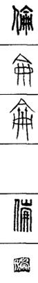 从上到下依次是小篆、甲骨文、金文、古玺及战国文字、缪篆及汉代文字、鸟虫篆。