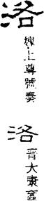 〔代字〕以“雒”代“洛”:《明史·礼志五》云:“天启元年正月,从礼部奏,凡从点水加各字者,俱改为‘雒’……各王府及文武职官,有犯庙讳御名者,悉改之。”