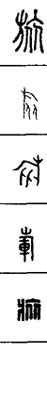 从上到下依次是小篆、甲骨文、金文、古玺及战国文字、缪篆及汉代文字、鸟虫篆。