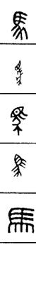 从上到下依次是小篆、甲骨文、金文、古玺及战国文字、缪篆及汉代文字、鸟虫篆。