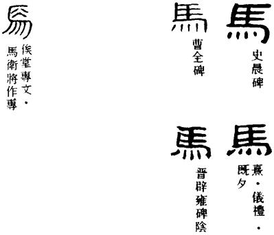 (一)mǎ 《广韵》:说文曰,怒也,武也,象头髦尾四足之形。 莫下切 假开二上马明