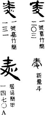 mài 《广韵》:〈白虎通〉:麥,金也。金王而生,火王而死。……俗作麦。 莫獲切 梗开二入麦明
