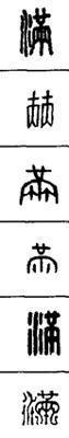 【辨析】满、盈、益(溢)。这三字都有满的意思,但有细微差别。“益(溢)”的意思是器皿中水满了流出来。《说文》:“益,器满也。”“盈”的意思是人把器皿装满。《说文》:“盈,满器也。”而“满”字则是泛指满,兼有“已满”、“满之”两个意思。