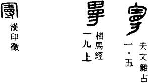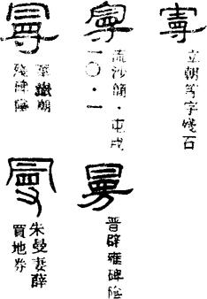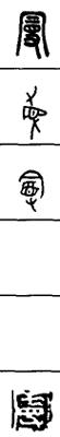 从上到下依次是小篆、甲骨文、金文、古玺及战国文字、缪篆及汉代文字、鸟虫篆。