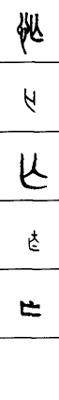 从上到下依次是小篆、甲骨文、金文、古玺及战国文字、缪篆及汉代文字、鸟虫篆。
