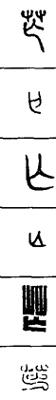 从上到下依次是小篆、甲骨文、金文、古玺及战国文字、缪篆及汉代文字、鸟虫篆。