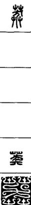 从上到下依次是小篆、甲骨文、金文、古玺及战国文字、缪篆及汉代文字、鸟虫篆。