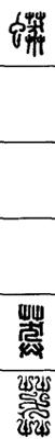 从上到下依次是小篆、甲骨文、金文、古玺及战国文字、缪篆及汉代文字、鸟虫篆。