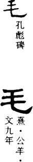【说明】“毛”为象形字。像兽毛或眉发之形。参附录三。