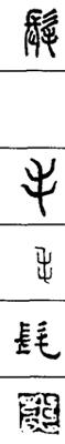 从上到下依次是小篆、甲骨文、金文、古玺及战国文字、缪篆及汉代文字、鸟虫篆。