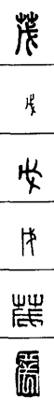 从上到下依次是小篆、甲骨文、金文、古玺及战国文字、缪篆及汉代文字、鸟虫篆。