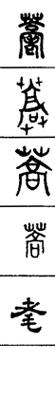 从上到下依次是小篆、甲骨文、金文、古玺及战国文字、缪篆及汉代文字、鸟虫篆。