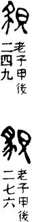 从上到下依次是小篆、甲骨文、金文、古玺及战国文字、缪篆及汉代文字、鸟虫篆。