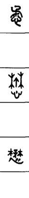 从上到下依次是小篆、甲骨文、金文、古玺及战国文字、缪篆及汉代文字、鸟虫篆。
