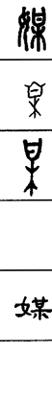 从上到下依次是小篆、甲骨文、金文、古玺及战国文字、缪篆及汉代文字、鸟虫篆。