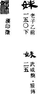 殷墟甲骨文《合集》三八一九一:“妹延雨。”《合集》三八二〇二:“妹其霋(霽)。”《前》二·三九·二:“妹其餗。”《卜》七六九:“妹其工典。”妹讀為昧,《説文》:“昧,昧爽,旦明也。从日,未聲,一曰闇也。”