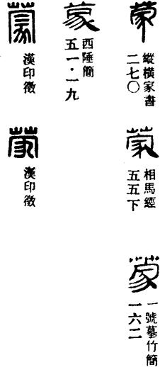 从豕会意,为蒙1的本字。矇字为蒙3本字,从目蒙声,引申有蒙4义。濛字为蒙2的本字,从水蒙声。懞字从心蒙声,本义指朴实敦厚,旧时借用为懵。今概写作蒙。