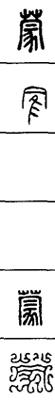 从上到下依次是小篆、甲骨文、金文、古玺及战国文字、缪篆及汉代文字、鸟虫篆。