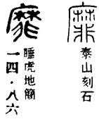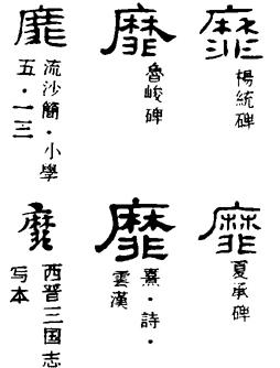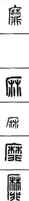 从上到下依次是小篆、甲骨文、金文、古玺及战国文字、缪篆及汉代文字、鸟虫篆。