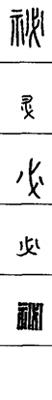 从上到下依次是小篆、甲骨文、金文、古玺及战国文字、缪篆及汉代文字、鸟虫篆。