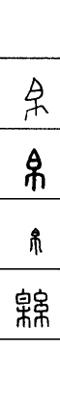 从上到下依次是小篆、甲骨文、金文、古玺及战国文字、缪篆及汉代文字、鸟虫篆。