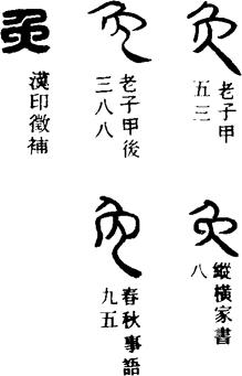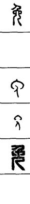从上到下依次是小篆、甲骨文、金文、古玺及战国文字、缪篆及汉代文字、鸟虫篆。