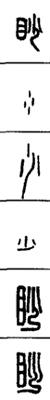 从上到下依次是小篆、甲骨文、金文、古玺及战国文字、缪篆及汉代文字、鸟虫篆。