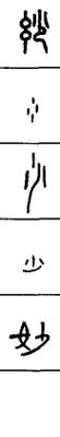 从上到下依次是小篆、甲骨文、金文、古玺及战国文字、缪篆及汉代文字、鸟虫篆。