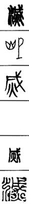 从上到下依次是小篆、甲骨文、金文、古玺及战国文字、缪篆及汉代文字、鸟虫篆。