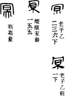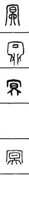 从上到下依次是小篆、甲骨文、金文、古玺及战国文字、缪篆及汉代文字、鸟虫篆。