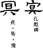 ①暗,昏暗。《吕氏春秋·谨听》:“是乃冥之昭,乱之定。”(冥之昭:把昏暗当成光明。乱之定:把混乱当成安定。)《淮南子·说林》:“置之冥室之中,不能搏龟鳖,势不便也。”比喻愚昧。韩愈《祭鳄鱼文》:“不然,则是鳄鱼冥顽不灵。”[冥冥]1.昏暗的样子。《诗经·小雅·无将大车》:“无将大车,维尘冥冥。”(将:扶进。)范仲淹《岳阳楼记》:“薄暮冥冥。”比喻愚昧无知的样子。《颜氏家训·书证》:“若不信其说,则冥冥不知一点一画有何意焉。”2.幽深、深远的样子。屈原《九章·涉江》:“深林杳以冥冥兮。”(杳:幽深。)苏轼《喜雨亭记》:“太空冥冥,不可得而名。”②海。后来写作“溟”。《庄子·逍遥游》:“北冥有鱼。”③幽深,深远。孙绰《游天台山赋》:“临万丈之绝冥。”杜牧《阿房宫赋》:“高低冥迷,不知西东。”④迷信的人称人死后进入的世界,阴间。《后汉书·冯衍传下》:“赍此恨而入冥。”(赍jī:带着,怀抱着。)方苞《狱中杂记》:“胥某一夕暴卒,人皆以为冥谪云。”(胥:小吏。谪:处罚。)⑤夜。枚乘《七发》:“冥火薄天。”(薄:迫近。)何逊《七召·治化》:“映景星于初冥,聆凤音于将晓。”⑥相合,暗合。《关尹子·四符》:“唯无我无人,无首无尾,所以与天地冥。”柳宗元《始得西山宴游记》:“心凝形释,与万化冥合。”