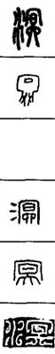 从上到下依次是小篆、甲骨文、金文、古玺及战国文字、缪篆及汉代文字、鸟虫篆。