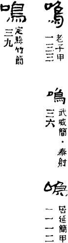 ①禽兽发声。 蓦听的孤鸿只在楼外鳴。(五二10上4)離(鸡)鳴叫切(彻)寒云外。(四七1上4)