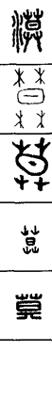 从上到下依次是小篆、甲骨文、金文、古玺及战国文字、缪篆及汉代文字、鸟虫篆。