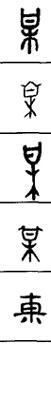 从上到下依次是小篆、甲骨文、金文、古玺及战国文字、缪篆及汉代文字、鸟虫篆。