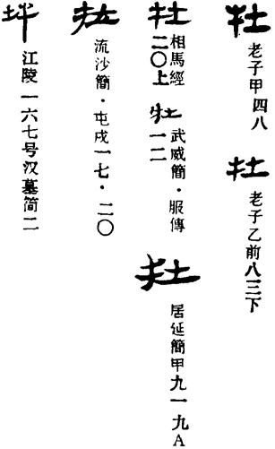 从上到下依次是小篆、甲骨文、金文、古玺及战国文字、缪篆及汉代文字、鸟虫篆。