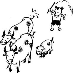 【说明】“牧”为会意字。像手持棍放牛意。参附录三。