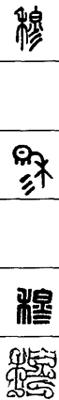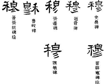 〈辨〉穆字甲骨文为象形字,象向日葵的植株形;金文象向日葵成熟籽落形;篆书讹变为从禾