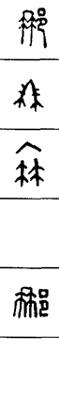 从上到下依次是小篆、甲骨文、金文、古玺及战国文字、缪篆及汉代文字、鸟虫篆。