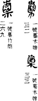 从上到下依次是小篆、甲骨文、金文、古玺及战国文字、缪篆及汉代文字、鸟虫篆。