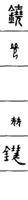 从上到下依次是小篆、甲骨文、金文、古玺及战国文字、缪篆及汉代文字、鸟虫篆。